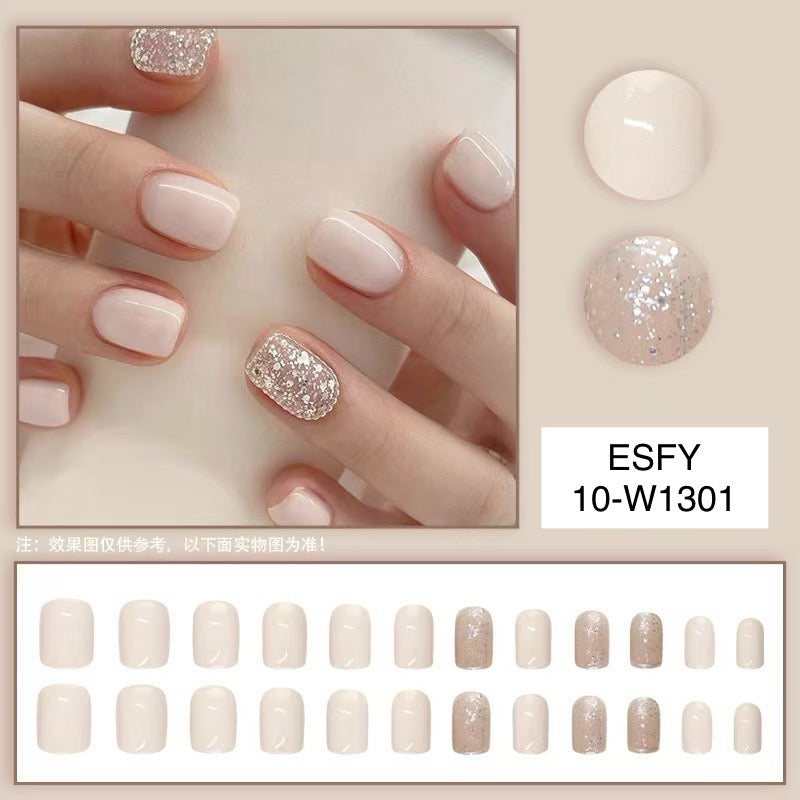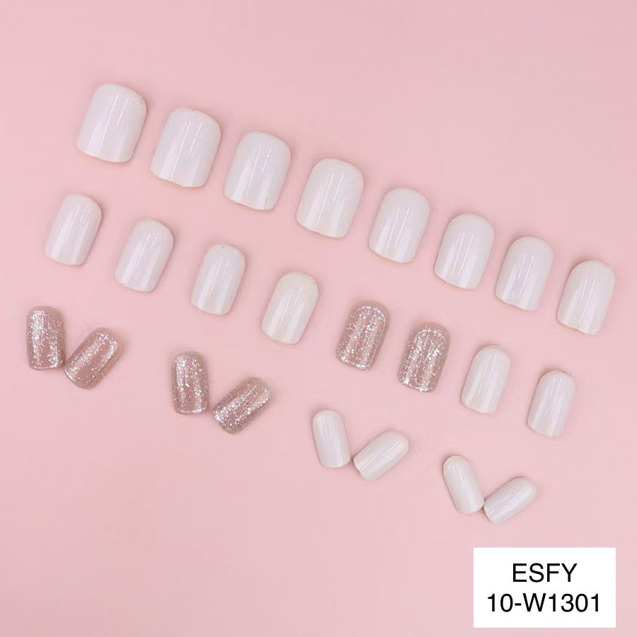 Shine Effortlessly with ESFY Perfect Press-On Nails – Glittering Ivory Elegance