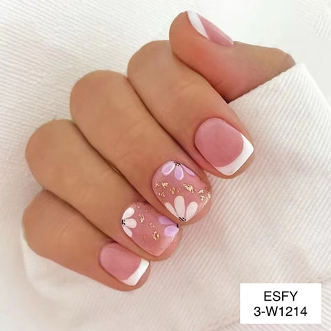Transform your nails with the delicate beauty of Golden Daisy Charm, part of the ESFY Perfect Press-On Nails collection. Featuring a soft blush pink base with classic French tips, charming daisy accents, and luxurious gold foil details, this design strikes the perfect balance between modern sophistication and floral elegance.