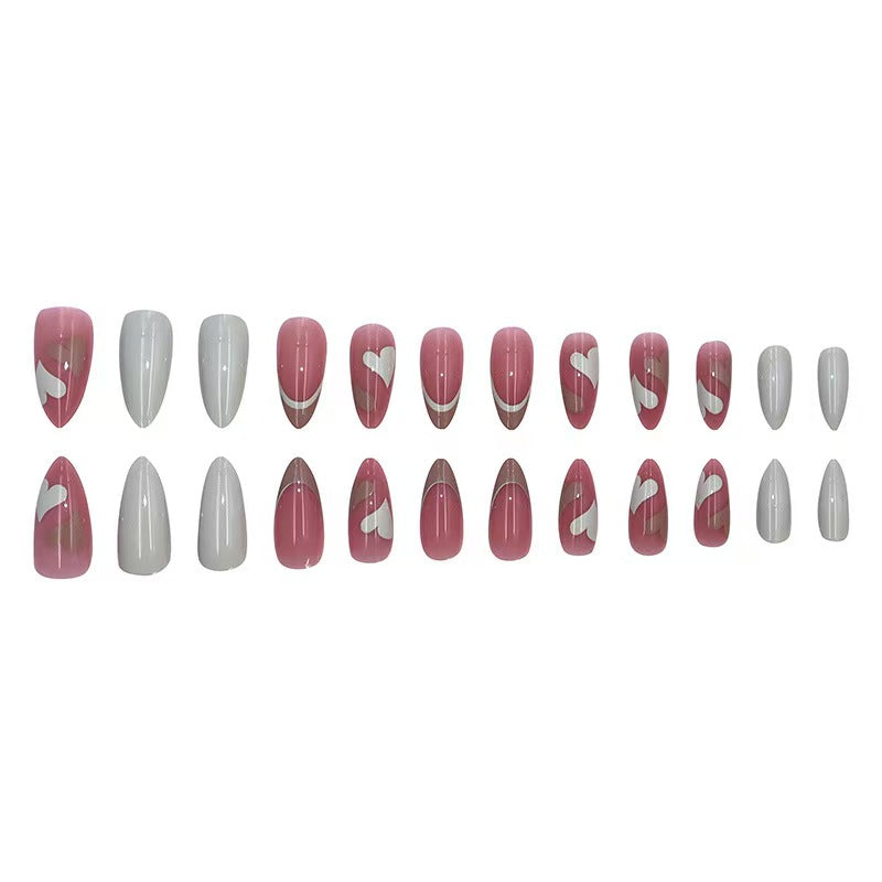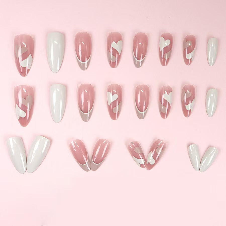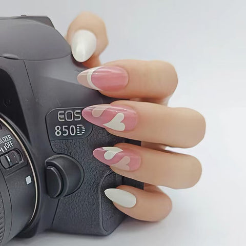 - Romantic pink heart press-on nails