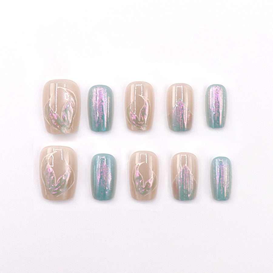 Unleash the magic of "Ocean Mirage" from ESFY Perfect Press-On Nails – a stunning blend of oceanic blue chrome and soft nude hues that shimmer like the waves at sunset. This breathtaking set is perfect for anyone who loves a sophisticated yet daring manicure that makes a statement.